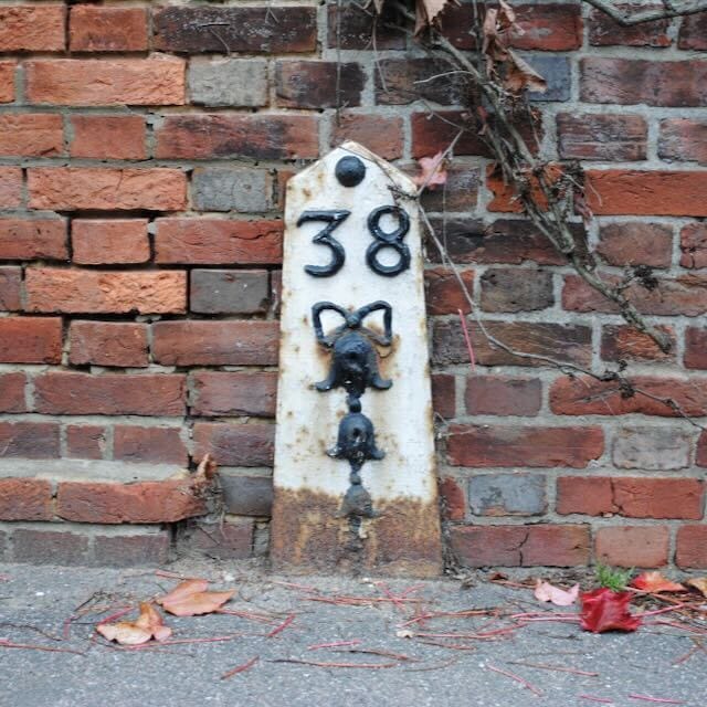 Strung along the A22 like grave markings for a vanished transport system, the Bow Bells milestones punctuate the old coaching route between Eastbourne and London. This example is from the village of Nutley in the Ashdown Forest. The milestones were installed by the turnpike trust that managed the road during the eighteenth century. Given that the Ashdown Forest was a centre for the iron industry, it’s likely the signs were made locally. The straightforward approach would have been to inscribe them with the destination ‘London’, but someone, a proto-brand manager in the trust or a bright spark in the ironworks, had the idea for something more creative.