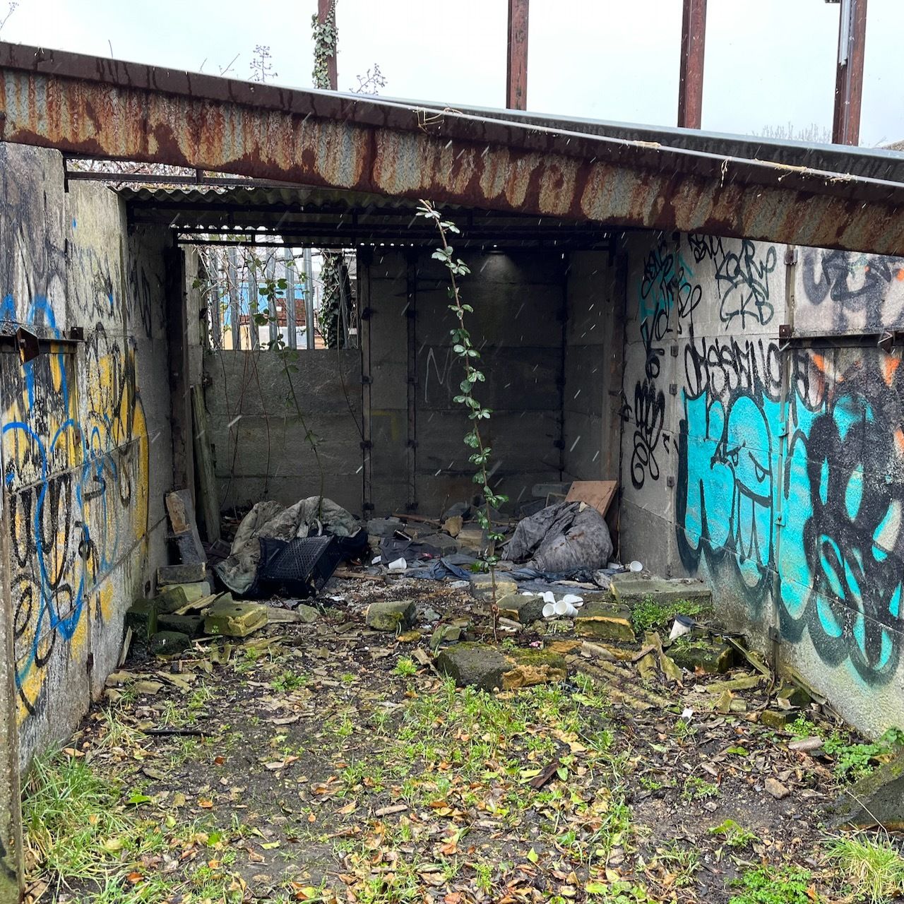 The remains of the cell are still visible. The photograph above shows the exterior (centre of frame). There would have been some kind of opening through which Christine could communicate, receive food and have her bodily waste removed. My guess is that the cell was about five feet high, three feet wide, and a foot and a half deep.